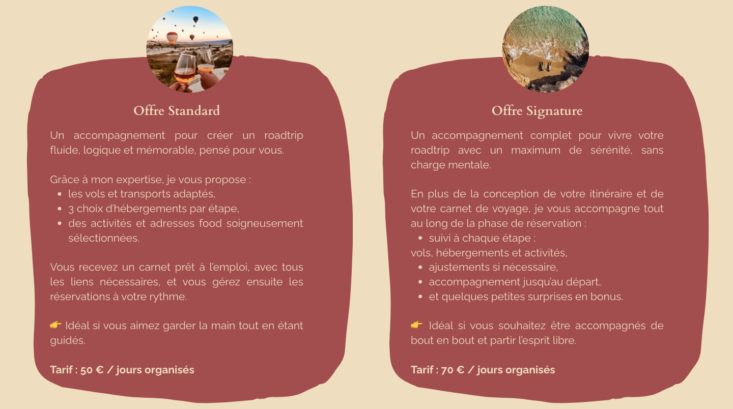 Je construis des roadtrips qui laissent de la place à l’émerveillement et aux moments qui comptent vraiment.